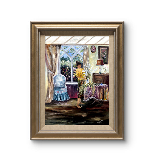 "Habitación azul" | Óleo sobre cartón con tela